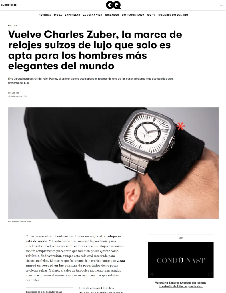 The magazine recently featured Charles Zuber describing It as “Suitable for the Most Elegant Men in the World”.